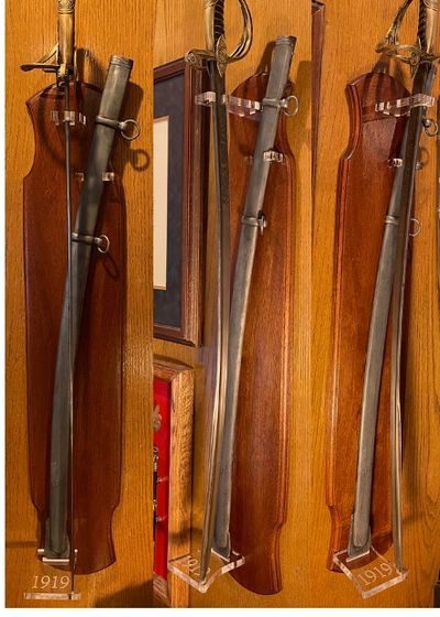 Our Model 1840 displays wide bladed swords like the US Model 1840 and its scabbard. The 1861 cradle is for slimmer blades. The cradle design prevents the sword or scabbard from tilting upward.